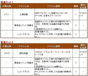 また、「土偶結晶」はD級アクセサリーに装着すると、HP+10%、SP+10%、全てのステータス+5という高性能が!その他にも、様々な便利な結晶が手に入るチャンスとなっておりますので、どうぞお見逃しなく♪