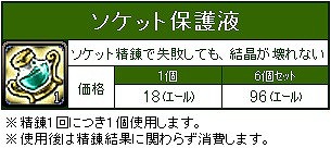 失敗すると結晶が消えてしまいますが、「ソケット保護液」があれば心配する事はありません♪「ソケット保護液」は1個18エール、6個入りで96エールと、ちょっぴりお得な価格になります。