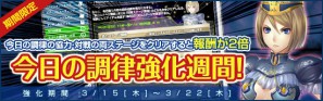 本日3月15日(木)定期メンテナンス終了後より、下記2つのイベントを開催いたします。報酬クロムギアが2倍になる「今日の調律強化週間」や週替わり半額SALEなどお得なイベントが盛りだくさん!ぜひご利用ください!