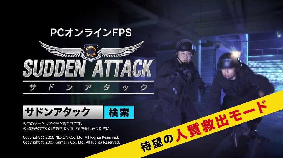 ネクソンは、「サドンアタック」において、お笑いコンビインパルスさんをCMキャラクターとして起用、明日3月17日からオンエアを開始する。