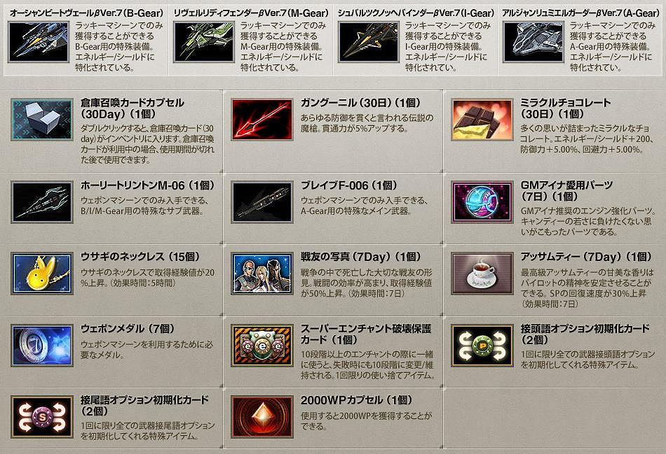 戦争や狩りなどで役立つアイテムを期間限定のガチャとして販売いたします。2010年4月に好評を博したラッキーマシンに実装されたアーマーのVer.7やレアアイテムもあったりとお得感満載のラインアップになっています。期間限定のこのチャンスにぜひチャレンジしてみてください。