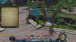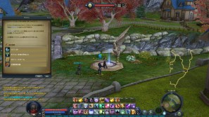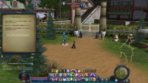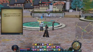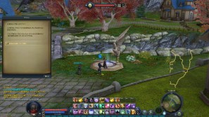 編集部がプレイしたのは魔族ということで、まずは住宅地フィールド「ペルノン」に降り立った。まずは広報官「ハレティオン」に話しかけてこの住宅地のことを知ることができるクエストを受託。村の空間移動士「へメリン」に話しかけるとペルノンの美しい風景をムービーで紹介してくれる。