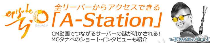 「A-Station」とは「タワー オブ アイオン」を始めたばかりの初心者プレイヤー達が、違うサーバーでキャラクターを登録したにもかかわらず、同族の仲間が同じエリアで出会うことのできるシステム(全サーバー共通チャンネル)となっている。