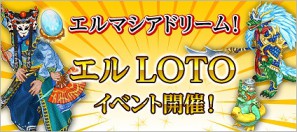 2012年4月16日より、アイテム「謎の召喚タマゴ」を使用して出現するモンスターを6種類当てるイベント「エルLOTO」を実施しております。公式サイトの特定ページに書き込みするだけで、豪華賞品がもらえちゃうかもしれないお得なイベントです!レベルに関係なくどなたでも参加できます!この機会にぜひ、参加してみてはいかがでしょうか?