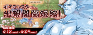 イベント期間中はすべての街道マップのボスモンスターのリポップ時間が通常の半分になり、ボスモンスターからしか入手できない貴重なアイテムが獲得しやすくなります。是非この期間に街道ボスを討伐して貴重なアイテムを入手してください。