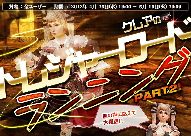 ハンビットユビキタスエンターテインメントは、「グラナド・エスパダ ルネッサンス」において、4月25日に「クレアのトレジャーロードランニング」イベントを実施する。