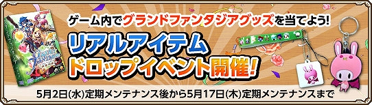 ゲーム内でグランドファンタジアグッズを当てよう!「リアルアイテムドロップイベント開催!」概要