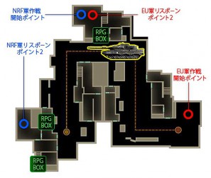 新MAP「BLACK HAWK」は、戦車を護衛し制限時間内に目標ポイントまで進攻することを目的とした攻撃側(EU軍)と、目標ポイントに到達されるのを阻止する守備側(NRF軍)に分かれて戦う護衛ミッションの新MAPです。