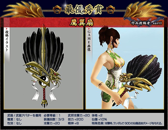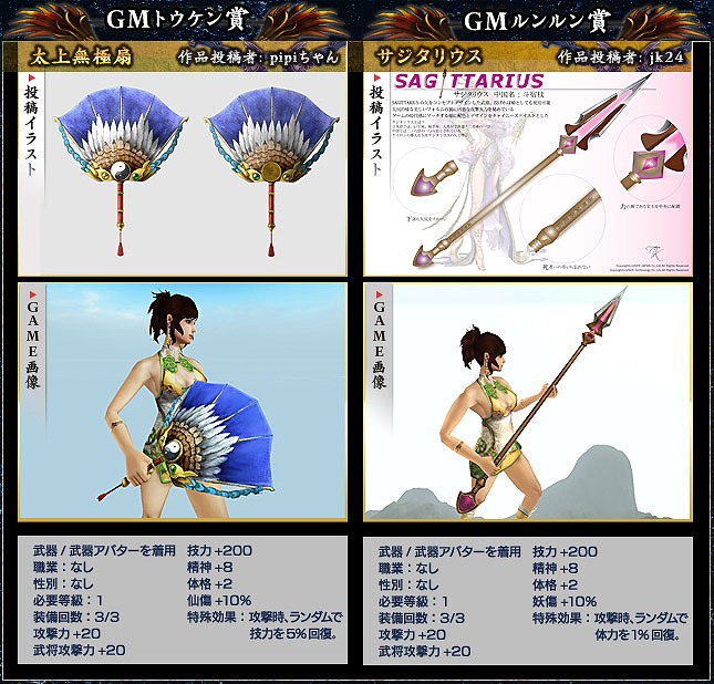 最高のオリジナル武器で「三国群英伝ONLINE2」を進化させる企画「第1回武器デザインコンテスト」。その受賞作品がいよいよゲーム内に実装されます!