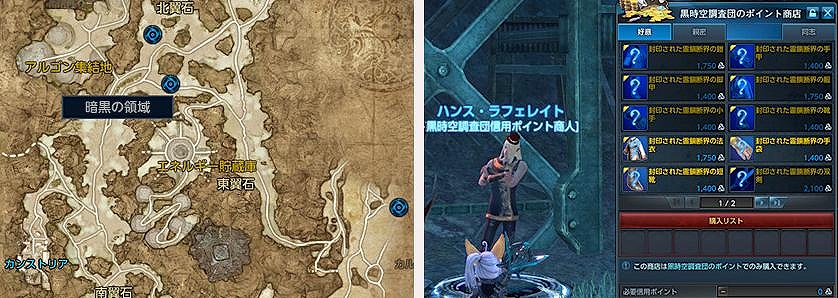 「暗黒の領域」発生地域にLv59 以上のキャラクターが進入すると「パブリッククエスト」が自動受注され、領域の閉鎖に貢献したキャラクターはポイントを獲得することができます。獲得したポイントは専用のNPC を通じて、様々なアイテムと交換ができます。