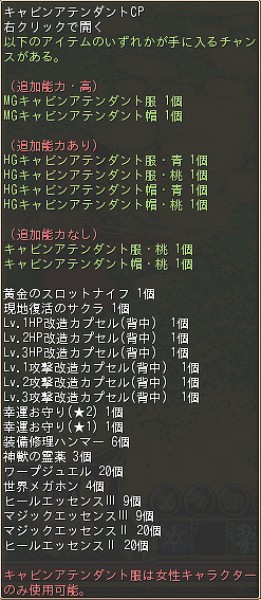 キャビンアテンダント服は女性キャラクターのみ使用可能。