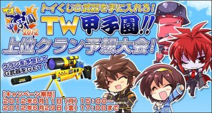 TW甲子園にもう一つの熱戦が繰り広げられる!「TW甲子園!!2012年夏の陣」1部リーグの参加クランに、5月28日(月)10:00の時点で所属していた方を対象とした、個人戦!