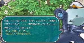 エンジェル学園にNPC「アクア」がやってきています。どうやら、珍しい「ペット缶」を探しているようです。「ペット缶」はモンスターや採集資源から獲得することが出来るので、集めて持っていってあげましょう!お礼に少し珍しいエレメント型ペットがもらえるみたいです。
