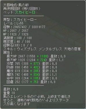 使用するとエレメント系ペットがランダムで入手できる。上級まで進化させると、通常のNPC販売のペットよりステータスが高くなります。