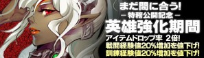 期間中、狩りでのアイテム入手確率が約2倍になります。英雄をガンガン狩りにだして、強化アイテムを入手してください!
