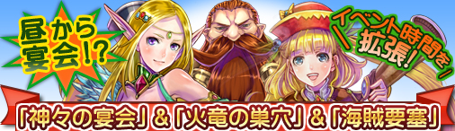 昼から乾杯!?「神々の酒宴」&「火竜の巣穴」&「海賊要塞」の開催時間を追加!