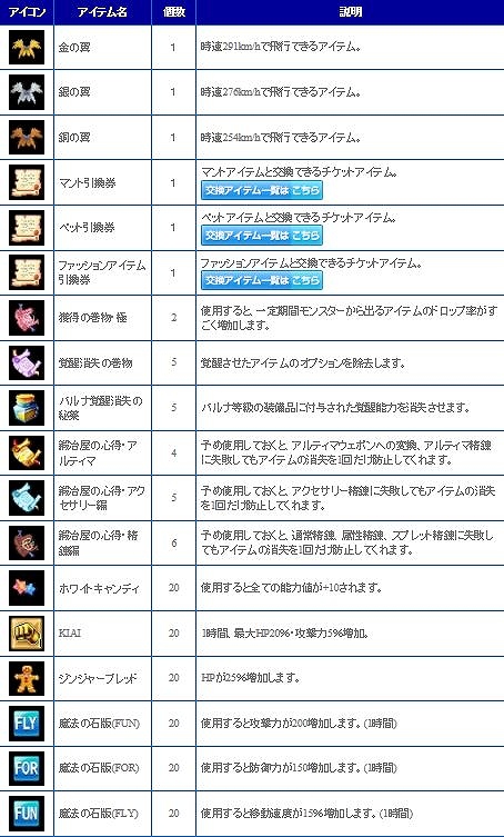 下記のアイテムの中から1種類が一定確率で入手できます。