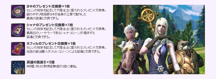 キャンペーン期間中に作成されたすべての新規キャラクターが対象となり、各レベル達成毎にゲーム内で役立つアイテムをプレゼントいたします。また、初めてTERAを始められた方には、レベル26・27・28達成時に特別な支援や豪華プレゼントをご用意いたしました。ぜひキャンペーンにご参加ください。