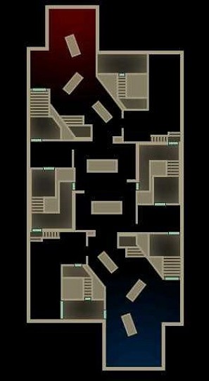 どちらの陣営からも建物ルートを通って進出することができる丘をイメージした中央の部分が最も重要で激しい接戦地域となり、殲滅ならではの打ち合い交戦が十分に楽しめるようになっています。