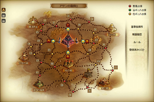 第2ステージ「反撃の烽火」で勝者となった6個のギルドおよび、それぞれのギルドと付属関係を結んでいる1ギルドが、第3ステージ「アサンの復興」に参加できます。第1段階の悪魔の城占領戦が2週間続いた後、第2段階の燃焼の心攻略戦が2週間かけて行われます。