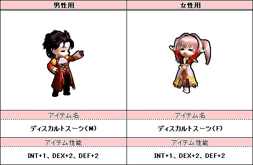 その他にも、キャラクターの星座によって真価を発揮する輝く頭装備「カルキノス[1]」や、インパクト大な背装備「ベルスガード[1]」など、素敵なアイテムが目白押しです。また、アイテムモールの衣装項目に、新しいアバターを追加いたしました。深紅ですっきりとしたマギウスデザインの衣装「ディスカルトスーツ」。スタイリッシュに決めたい方におすすめの一着となっております。