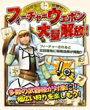 フィーチャーウェポンを大量解放いたします。毎日変化する該当武器種を使用して、より多彩な狩りをお楽しみください。当イベントの詳細につきましては、MHF 公式メンバーサイト内の告知ページをご確認ください。
