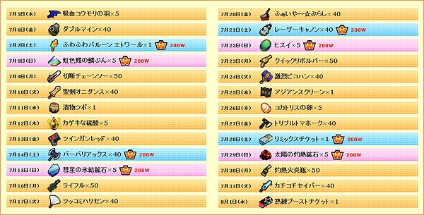 2012年7月5日(木)のメンテナンス終了後からお得なアイテムが毎日貰えるログインキャンペーンを実施いたします。