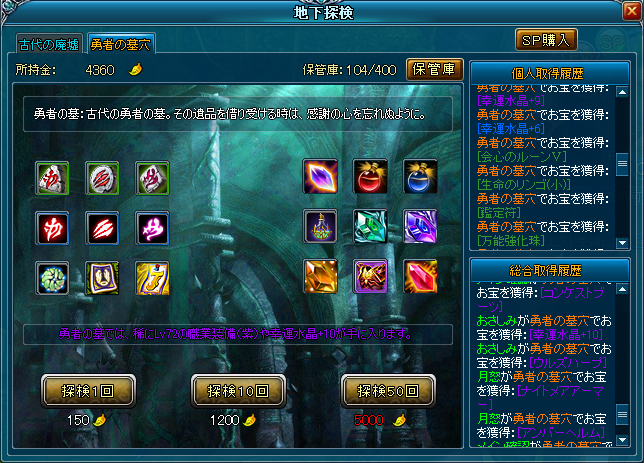 レベル72以上の上級者向けの上質な装備品や、上級資質石、幸運水晶+10等の普段手に入れることの難しい非常に貴重なお宝が隠されているようです。7月17日(火)より、「幸運水晶+8」と「幸運水晶+9」が追加されます!