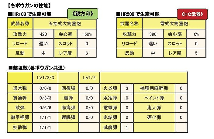 「夜空に瞬く花」オリジナル武器「五拾式大筒重砲」(ヘビィボウガン)、「零式大筒重砲」(ヘビィボウガン)について