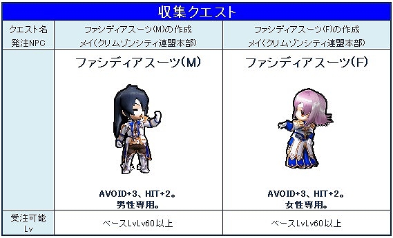 一方、「ル・シエル・ブルー」ならではの人気コンテンツ“収集クエストでアバターをGET”にも、「クレアブランシュ」の色違いアバターが追加されました。冒険に出かけて必要な材料を集めると、クールな青色バージョンの「ファシディアスーツ」が手に入ります。ベースレベル60以上なら誰でも挑戦可能です。「アルカディアブルー連盟本部」のNPC「メイ」に話しかけて、新収集クエストをクリアしてオシャレしよう!