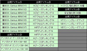 ※画像:Genius MINI ステータス(オプション:ターボスタート、ドリフト後ブースタ+ボーナスブースタ)