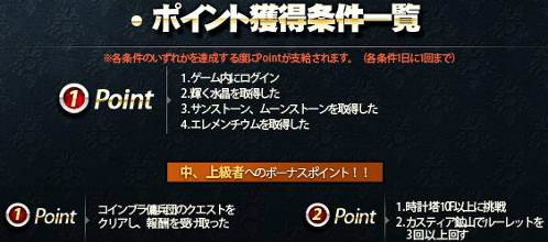 例)20日の00:00から23:59までに達成した条件を集計し、21日のAM5:00頃に20日に達成した条件に応じた錬金ポイントが支給されます。