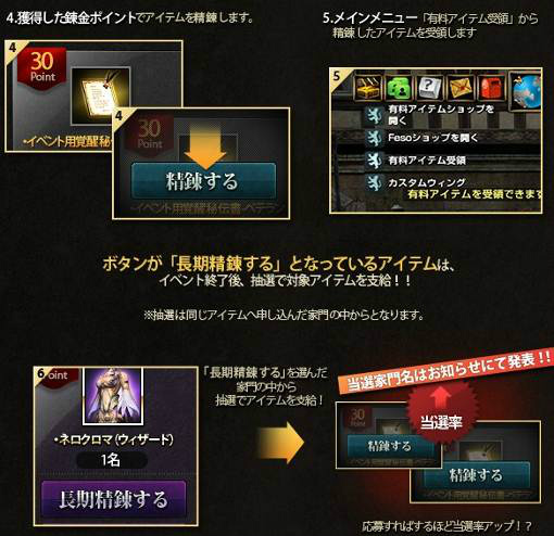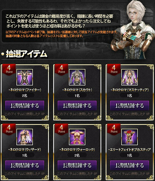 6. 「長期精錬する」ボタンのアイテムはイベント終了後、抽選を行い当選者のみ支給されます。