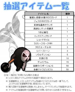 更に「ル・シエル・ブルー」公式ファンブックにも登場した「リーダー・ジェスロ」もペットになって新たに登場。その他にもモンスターに変身できるアイテムや、冒険に役立つ便利なアイテムが当るビッグチャンス!