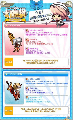 新作幻想袋【peridot】の大当たりは、毅然とした印象の「ナイトセット」です。また、キャラクターの星座によって真価を発揮する頭装備「レオン[1]」や印象的な背装備「ラジンス[1]」等、素敵なアイテムが当るチャンスとなっておりますので、是非この機会にお試し下さい!