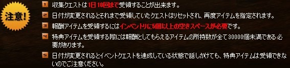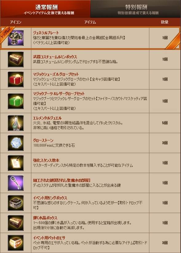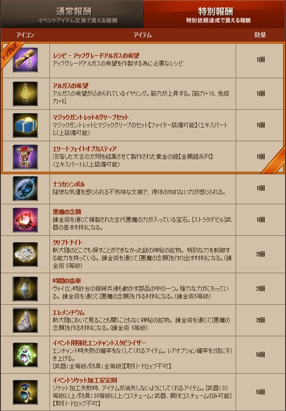 アイテムを集めて届けよう。 通常報酬のほか、 特別報酬には“アルガスの希望” もあるぞ