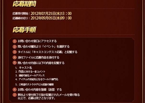 - アイテムの受領は、2012年 8月 1日(水) 13:00 ~ 8月 29日(水) 9:00 までとなります。