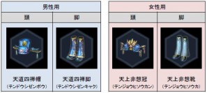 新デザイン服飾「天界服」の頭・脚部位が入手可能となります。染色もできますので、お手持ちの服飾とあわせて、コーディネートをお楽しみください。