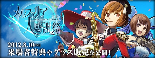 さらに、会場内各種案内板にはお客様から募集したイラストを使用いたします様々な趣向を凝らしたイラストをお楽しみください!!大幅にパワーアップしたメルファリア大感謝祭2012へのご参加、心よりお待ちしています。