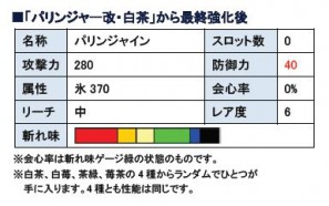 HR31 以上で「S パリンジャー改」に、HR100 以上で「S パリンジャイン」に強化が可能です。