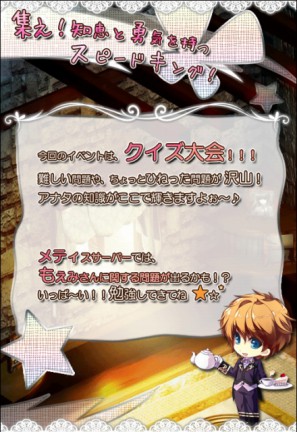 GMイベント「集え!知恵と勇気を持つスピードキング!」を開催いたします。参加方法はとってもカンタン♪ イベント時間内、GMが出題したクイズに答えるだけ。どなたでも解ける超簡単な問題から、ひねくれた難問まで幅広くご用意しております。