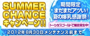 マーベラスAQLは、「ブラウザ一騎当千」において、夏の爆乳感謝祭「SUMMER CHANCE」キャンペーンなど3つのキャンペーンを本日8月23日より開催すると発表した。