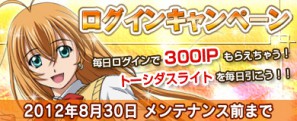 毎日ログインするだけで300IP ゲットのチャンス トーシダスライトが毎日ひける♪ログインキャンペーン