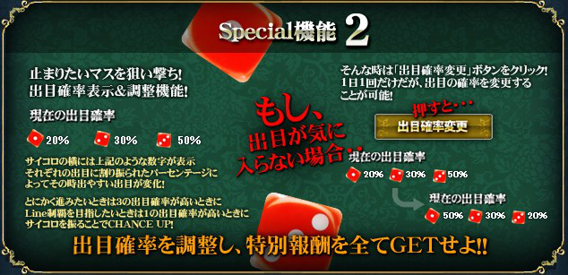 ※出目確率変更ボタンは1日1回しか使用できません(使用回数の持ち越しも不可能です)。