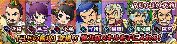 2012/9/3週のメンテナンスより、9月の新武将カードが追加されます!