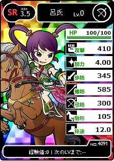 今回目玉の No.3104 「UR 孫権」は、強力な自動発動スキル「弓兵の極攻」を持って参戦!ステータスの高さにも要注目!また、ツインテールの女の子は初登場 No.4091 「SR 呂氏」!強力スキル「弓神降臨」で父親「呂布」譲りの攻撃と移動速度の高さを活かそう!