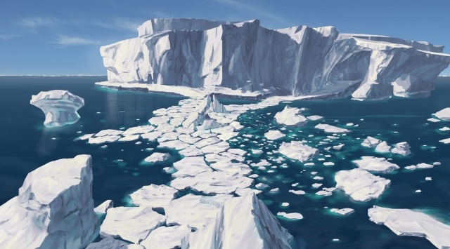 寒々しい海の一角にそびえる巨大な氷山。この極寒の地に生息するモンスターとは?