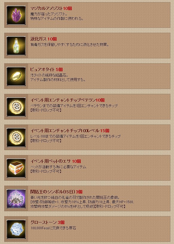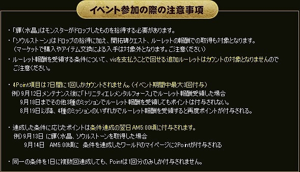 例)23日の00:00 から23:59 までに達成した条件を集計し、24日のAM5:00 頃に23日に達成した条件に応じた錬金ポイントが支給されます。