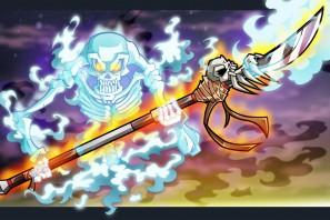 戦場にうち捨てられた人骨で作られた大薙刀。リーチが長く中距離戦に強いが、呪われているためアイテムが持てない。