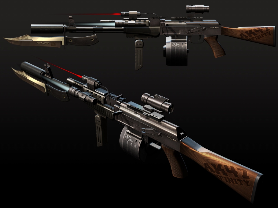 銃剣とサイレンサーが装着されたAK-47シリーズ。30発の装弾が無限に支給される。